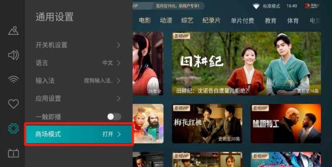 在【设置】里找到【通用设置】,在通用设置里有一项【商场模式】,选择开启。
