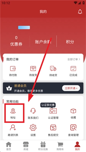在常用功能区域当中,选择地址按钮。