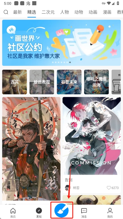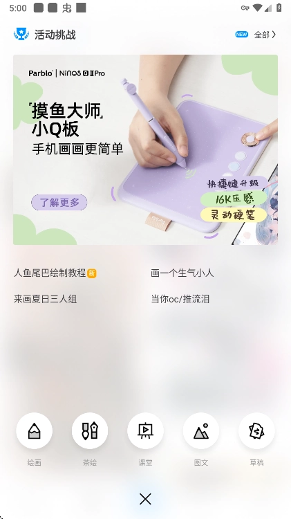 进入到绘画页面点击底部的画笔