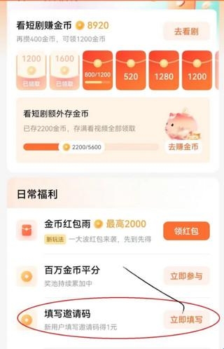 3、进入番茄畅听音乐版之后在页面的底部导航菜单中点击“领现金”进入任务中心,在领现金往下拉即可看到“填写邀请码”一行,点击后方的“立即填写”,进入填写邀请码页面。