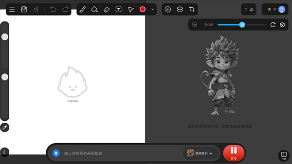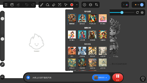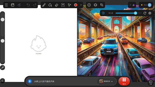 实时渲染技术,在绘画的过程中能清楚的看到作品效果,提升创作的效率。内置AI算法,手绘涂鸦图片、素材实时转变成具有艺术感的AI绘画作品。