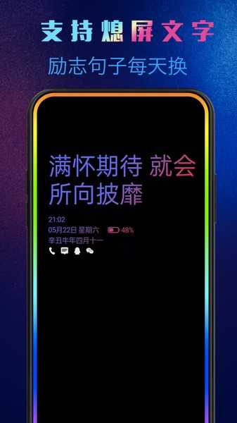 动感熄屏是一款专门为手机熄屏设计的屏保软件!软件为用户带来超炫酷的闪灯样式非常实用又有趣的一款锁屏软件,软件内拥有非常多酷炫的手机壁纸,吸引别人的目光,全屏渐变时钟给你带来不一样的感受,他的功能就是让你的手机屏保变得炫酷十足,你值得拥有,让用户随时都可以在软件之中对息屏动画进行自由的替换。