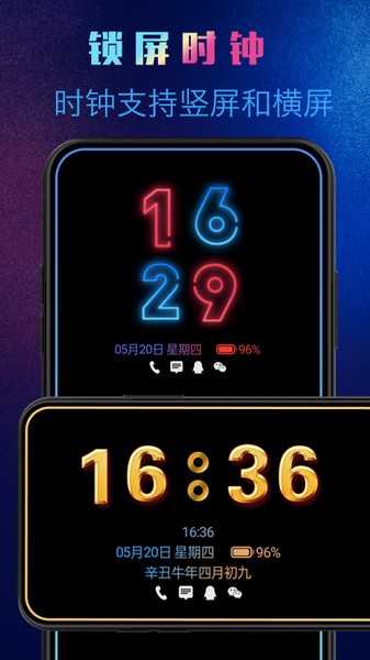 全屏渐变时钟给你带来不一样的感受,个性的界面设计,醒目的时间显示,日期和农历显示,