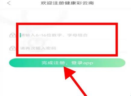 7、设置密码为6-16位数字、字母组合,输入两次,然后点击完成注册,登录app。