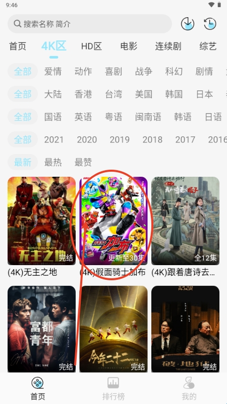 1、进入4K影视播放区;