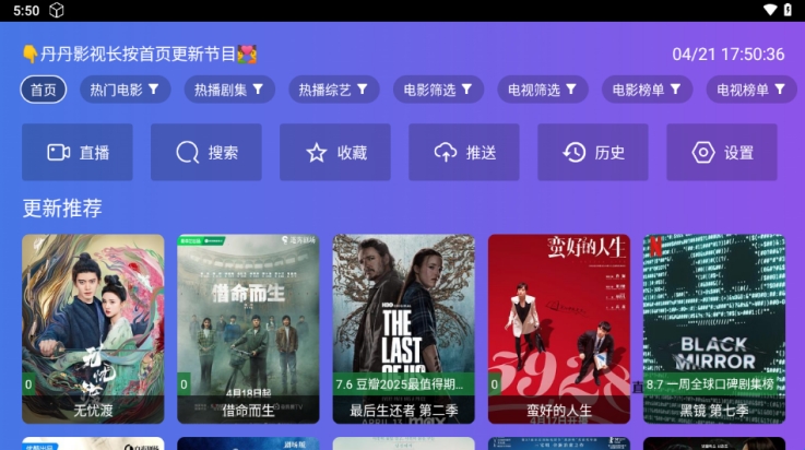 丹丹影视tv版(丹丹影视)汇聚了大量的优质的影视节目资源,随时可以在线进行影视剧搜索,精彩的剧集资源在这里都可以找到。同时在软件中你还可以观看电视频道直播,全程稳定无广告,给用户带来一个沉浸的观影体验。