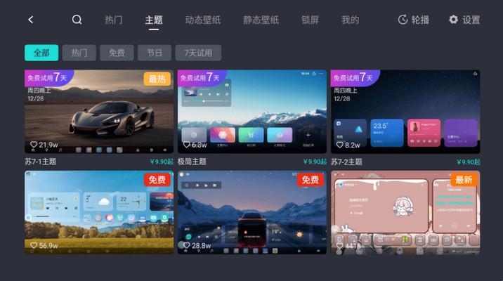 想要告别选择困难,那就来试试布丁桌面内的【壁纸轮播】功能。壁纸轮播分为动态壁纸轮播和静态壁纸轮播,每种轮播方式都是自动选取主题中心——我的内近期使用的30张壁纸。 动态壁纸轮播会在一个视频播放完以后自动播放下一张;静态壁纸轮播则是每30秒自动更换一张壁纸。 开启方法:布丁桌面主题中心——轮播,选择想要轮播的壁纸类型,点击【开启轮播】。