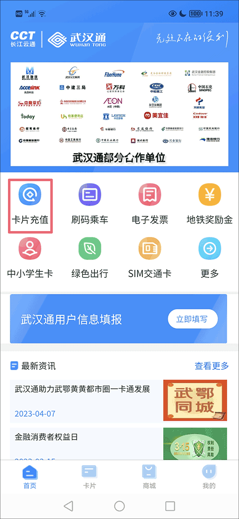 使用手机进行充值的用户,如果出现充值失败的情况,需要用户需自行申请退款。具体步骤为:打开我的武汉通app,在首页找到并点击“卡片充值”功能选项;