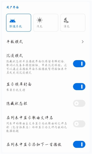 有其他主题供选择。支持桌面歌词、横屏模式、沉浸模式等等