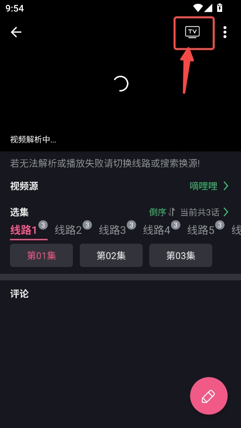 2、在播放页面点击右上角的投屏按钮。