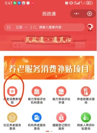民政通养老消费券领取方法