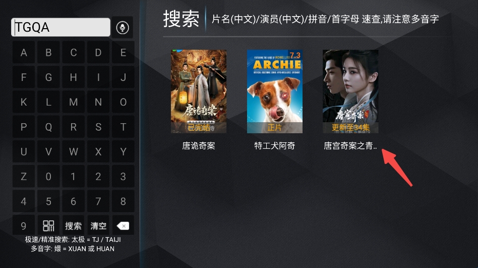7、在搜索结果点击对应的剧。