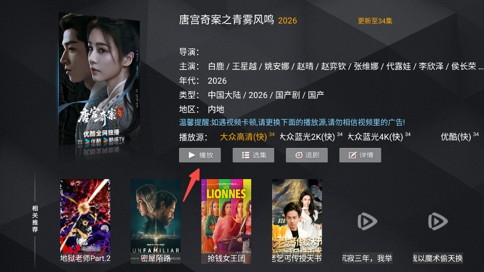 8、进入详情页直接点击播放即可。