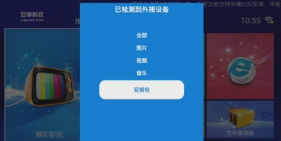 1、将下载好的apk安装包复制到U盘。U盘接入安博盒子会自动弹出提示↓