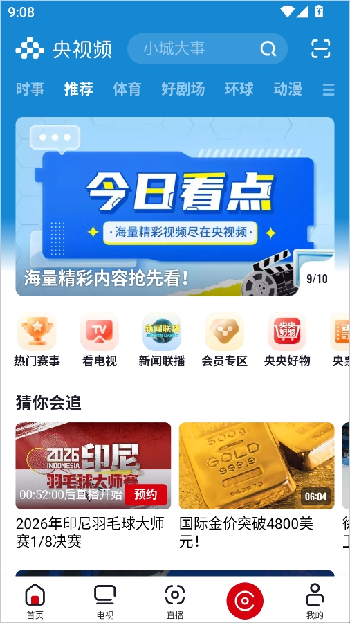 1、女足亚洲杯、CBA、NBA、五大联赛火热进行中!锁定央视频,让我们共同期待。