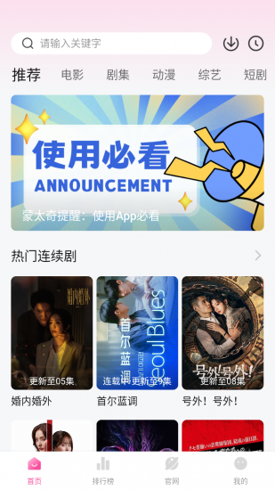 5、好用的搜索功能,直接就可以在搜索栏中输入关键词,去找到喜欢的影片。