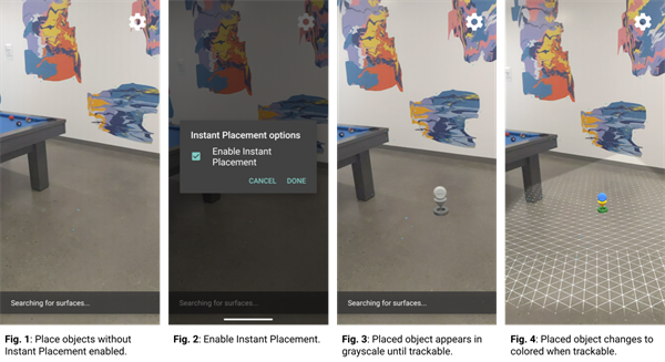 根据追踪移动设备在空间中的位置方向,虚拟对象可以被放置在一个稳定的环境中并与之交互。依赖于视觉惯性里程计结合了摄像头图像分析和惯性测量单元(IMU)的数据处理。