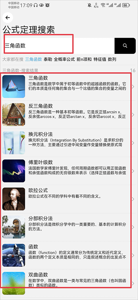 2、然后你可以在搜索功能中将需要查询的公式定理输入