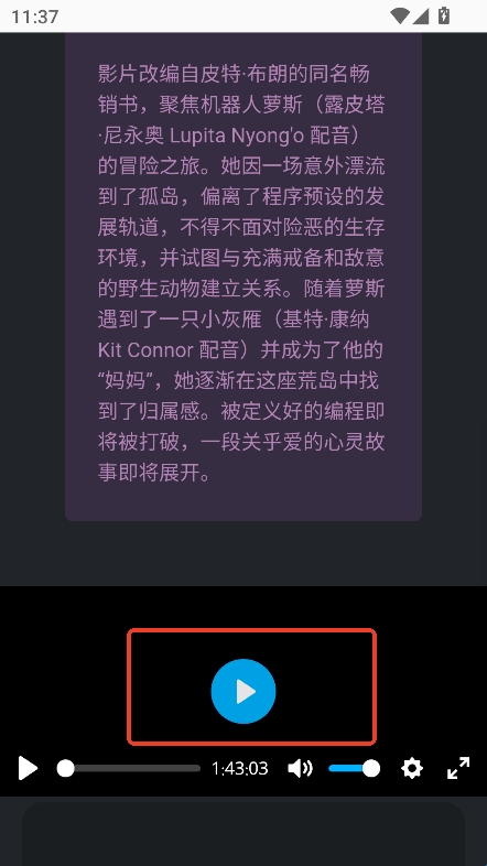 4、直接进入喜欢的影片,滑动到下方,点击播放按钮即可免费看电影