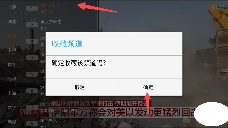 3、长按频道即可显示收藏,确定即可。