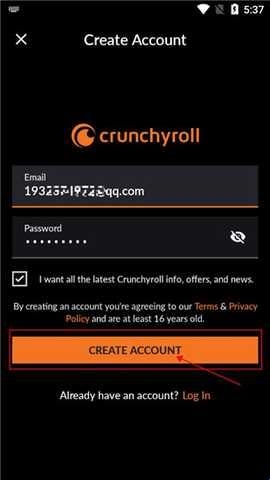 在Crunchyroll上,点击页面上的“CreateAccount”(创建账户)按钮。
