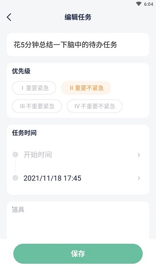 4、在第一栏中花5分钟总结一下闹钟的待办事项,期间你还可设置优化级、任务时间、专注时长以及休息时间等。
