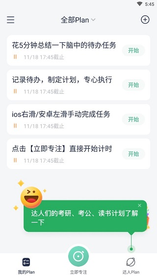 考研、四六级、公考达人计划库每日专注打卡,番茄工作法+游戏化机制+PDCA,帮助您科学定制学习计划和高效时间管理,培养专注习惯掉「手机瘾」。