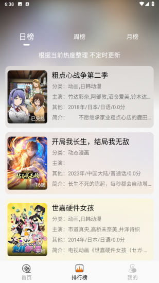3、直接就能设置的热门的排行榜单,轻松的就可以找到优质的动漫作品。