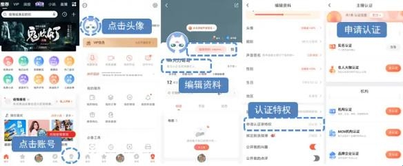 喜马拉雅APP:打开喜马拉雅APP,进入【账号】—点击个人头像—点击【添加标签】/【资料编辑】/【立即认证】—【资料编辑】—【申请认证享特权】即可进行身份认证。