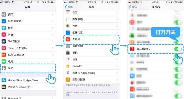 【苹果手机】打开手机设置→隐私→麦克风,在其中找到喜马拉雅并打开录音权限,再试试看是否还存在这样的问题。