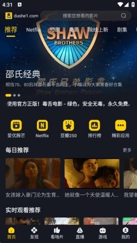 毒舌电影会实时更新海内外优质影视资源,首页设有每日推荐功能,会自动为大家推荐热门的影片。每一个影片播放都不需要付费,无会员限制,广告弹窗也没有,会为大家带来优质的影片。播放的清晰度很高,多项播放功能都有,可以随时进行设置。软件绿色安全、无任何病毒,可以放心下载使用。