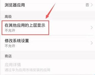 6、然后把页面里的在其他应用的上层显示开启即可。