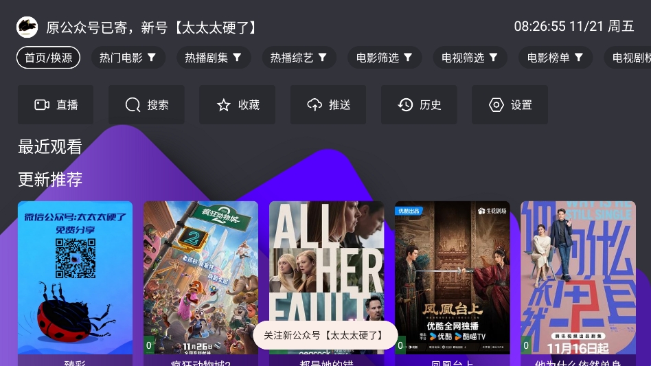 1、打开app已经内置源,如果失效可以点击设置按钮。
