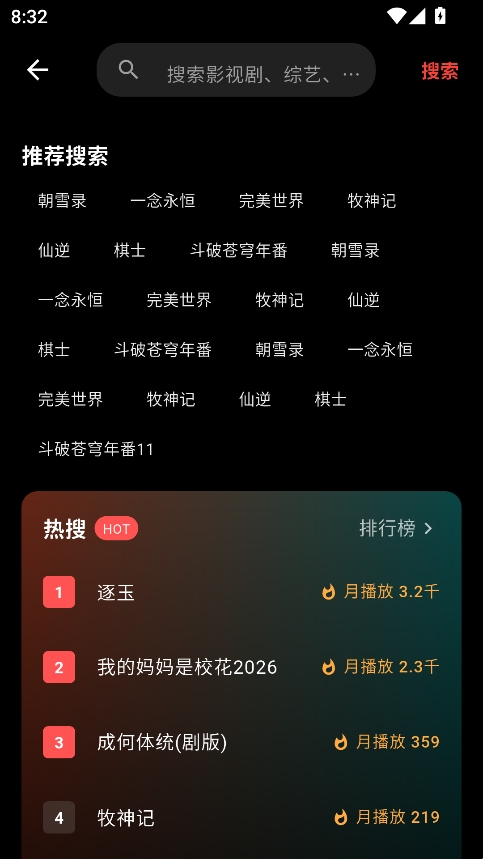 2、点击上方的搜索框,进入搜索页面输入关键词进行搜索。
