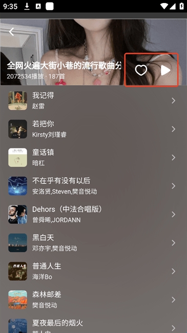 3、等待加载一会即可看到对应的歌单,可进行收藏或播放