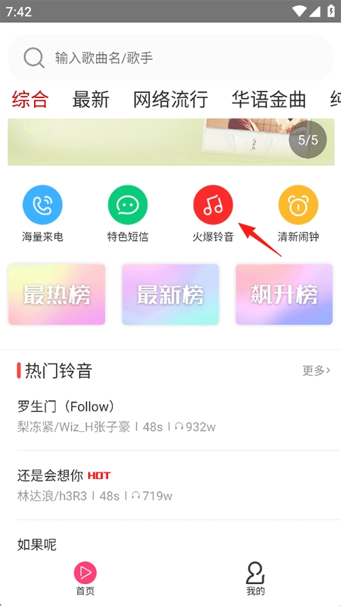 1、打开多多铃声APP,在首页点击火爆铃音;