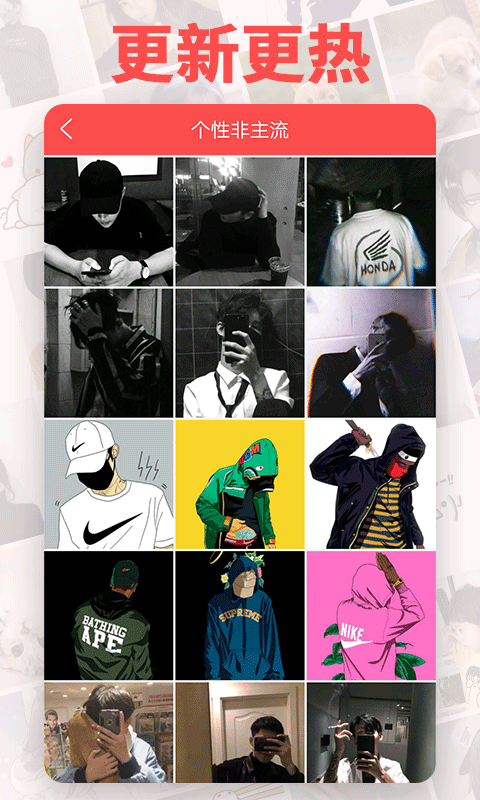 1、头像资源体量巨大品类齐全,更新贴合潮流,能够持续满足用户个性化头像更换需求。