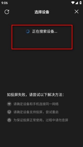 这个时候,软件就会开始搜索家里的电视了,搜索到设备后,点击连接就开始投屏了;