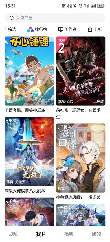 2、如果你想找漫剧,点击找片板块根据需求自行选择题材类型;