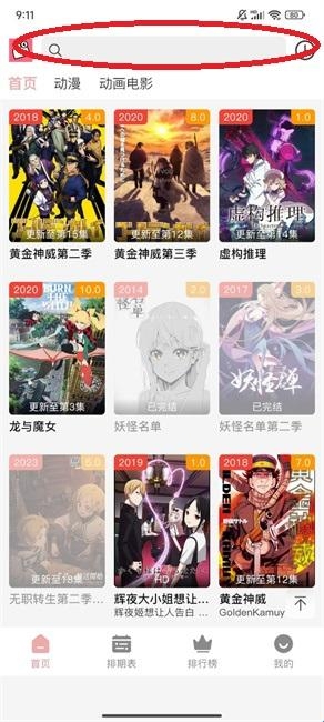 1、在搜索栏输入想看的动漫名称