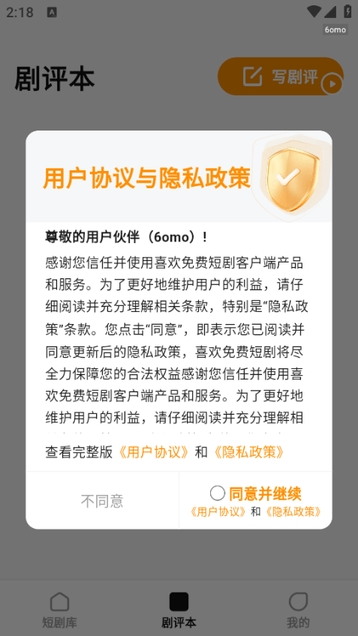 1、打开喜欢免费短剧app,同意用户协议。