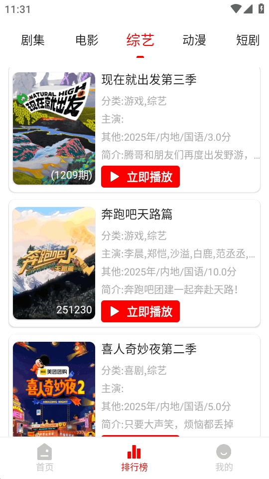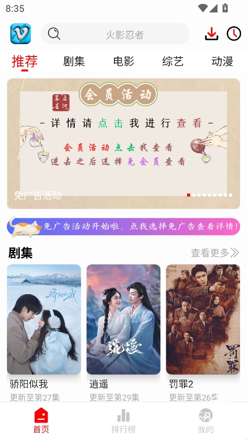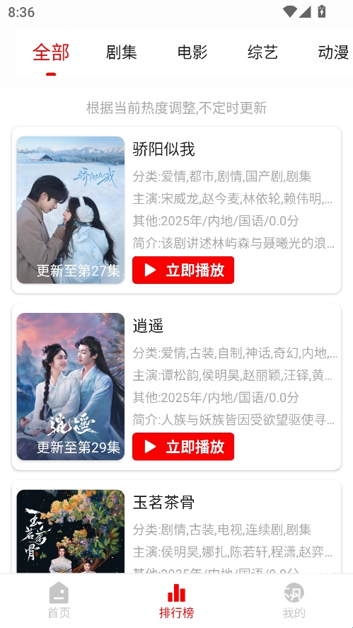 4、点击排行榜,可以查看近期热门的影视剧资源。