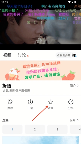 2、搜索到影片后,点击就可以播放,剧名下面有换源、下载、收藏和分享功能;