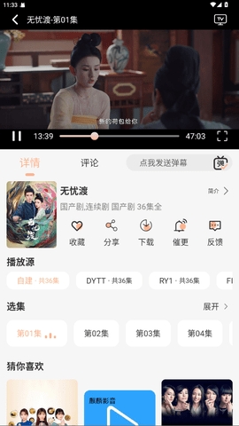 点击剧集进入播放页面,观看过程中可开启弹幕评论功能,与其他观众实时互动。