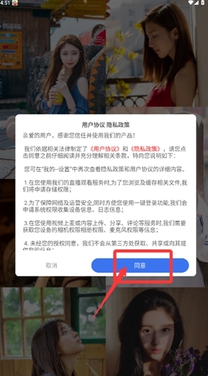 1、启动应用后阅读用户协议与隐私政策,点击同意按钮继续。