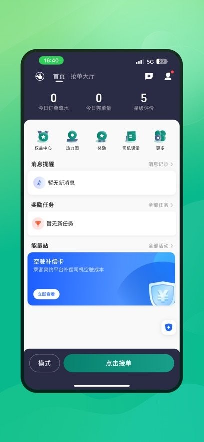 2、提供接单与暂停接单自由切换功能,方便司机合理调整休息时间。
