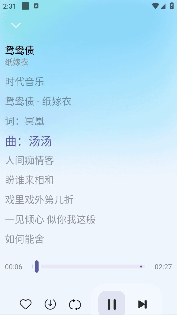 5、右滑页面,就可以查看歌词了
