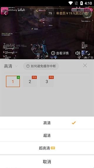3、选择缓存视频的清晰度;