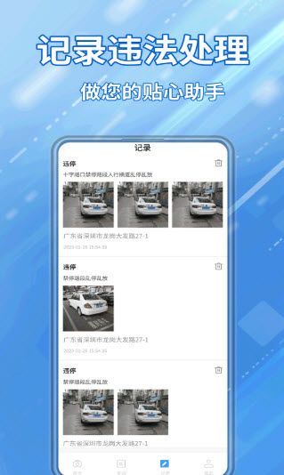 交通违章随手拍是一个拍照举报平台,每一个用户都可以将违章拍照的图片上传,然后上传到软件中,就会有专门的人员来为你进行举报,在处理违章违章的时候,还有一键上传到软件当中,随时都可以进行线上处理,不需要再去照相馆处理。