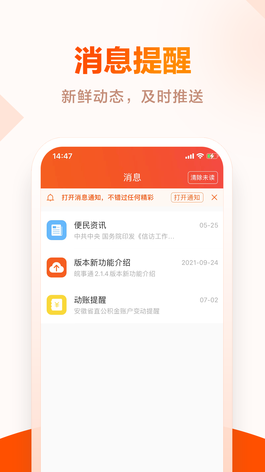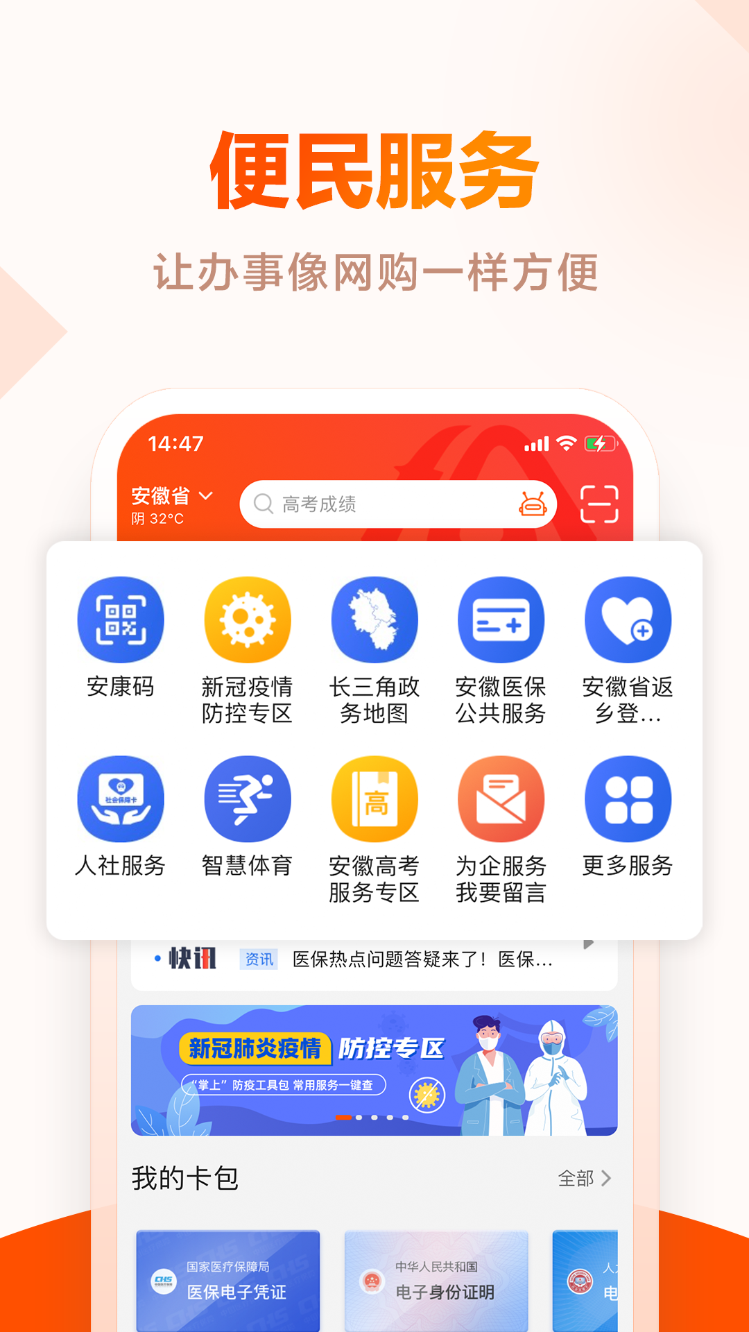 1.皖事通一键快速便民服务,支持办事服务,生活服务,资讯服务助您更方便的移动办事。
